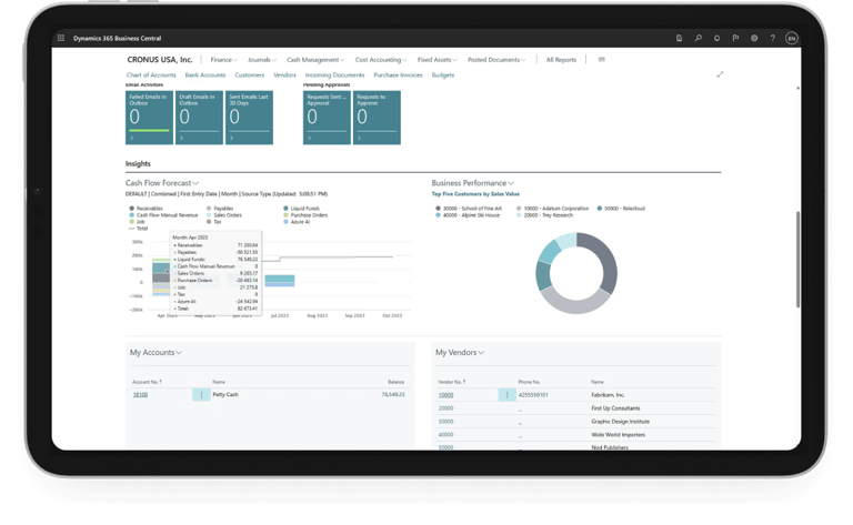 Business Central is a business management solution for small and mid-sized organizations that automates and streamlines business processes and helps you manage your business. Highly adaptable and rich with features, Business Central enables companies to manage their business, including finance, manufacturing, sales, shipping, project management, services, and more. Companies can easily add functionality that is relevant to the region of operation, and that is customized to support even highly specialized industries. Business Central is fast to implement, easy to configure, and simplicity guides innovations in product design, development, implementation, and usability.